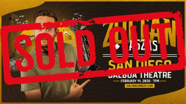 Zoltan Kasza’s February 14th Balboa Theatre show is SOLD OUT! After 18 years of touring comedy clubs, theaters, and international festivals, Zoltan Kaszas is coming home. The award-winning comedian has just officially sold out his first-ever hometown theatre show at San Diego’s iconic Balboa Theatre.